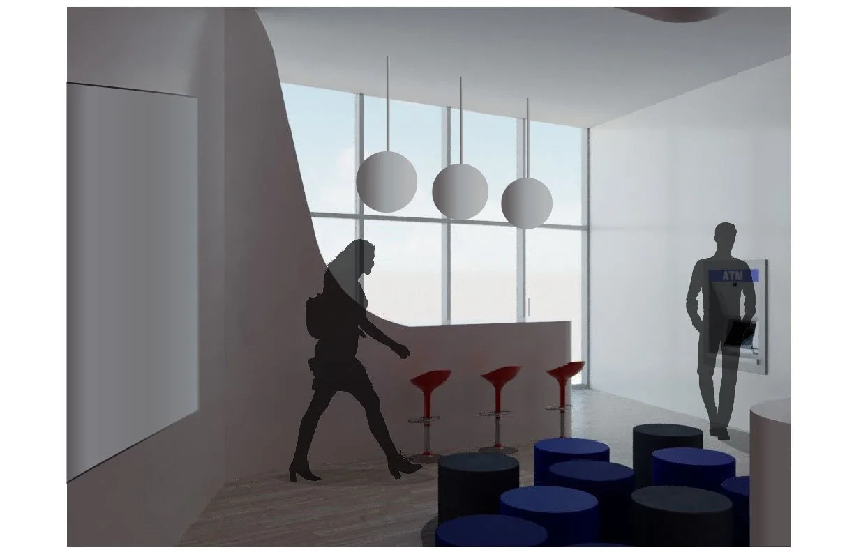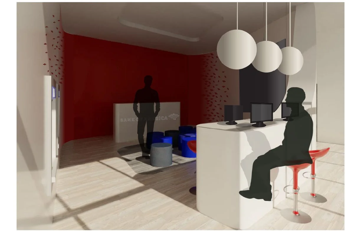 Features a technology help desk, an education center, teller desk, conference room, and private meeting space.